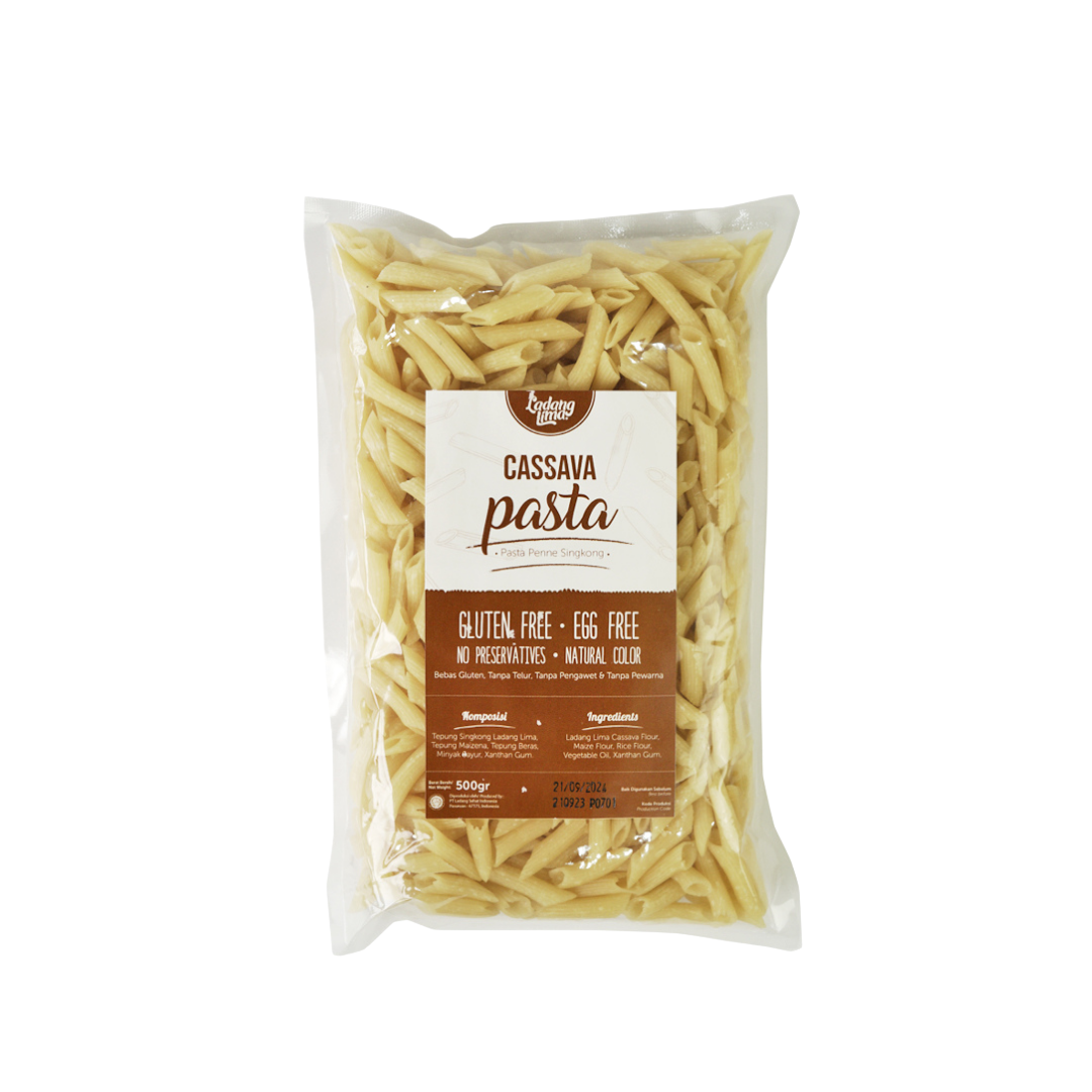 Ladang Lima Cassava Pasta Penne is crafted from premium cassava flour, resulting in a naturally gluten-free pasta with an al dente texture. It's free from eggs, artificial coloring, preservatives, and MSG, making it suitable for individuals with gluten intolerance, egg allergies, or those aiming for a balanced metabolism. This pasta is versatile and can be used in various dishes such as macaroni & cheese, pasta salads, baked pasta dishes, soups, or paired with your favorite sauces.
